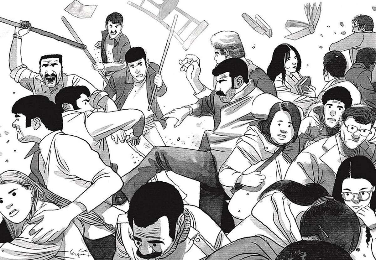 Academic texts don’t usually manifest themselves as graphic novels. Whether Turkish Kaleidoscope, a narrative about political unrest in the Turkey of the 1970s, is technically “academic”, it comes from a university press; author Jenny White, although she has several novels under her belt, is also a social anthropologist with a clutch of scholarly volumes as well; much of the source material for Turkish Kaleidoscope comes from interviews she conducted in 2014. So, close enough.